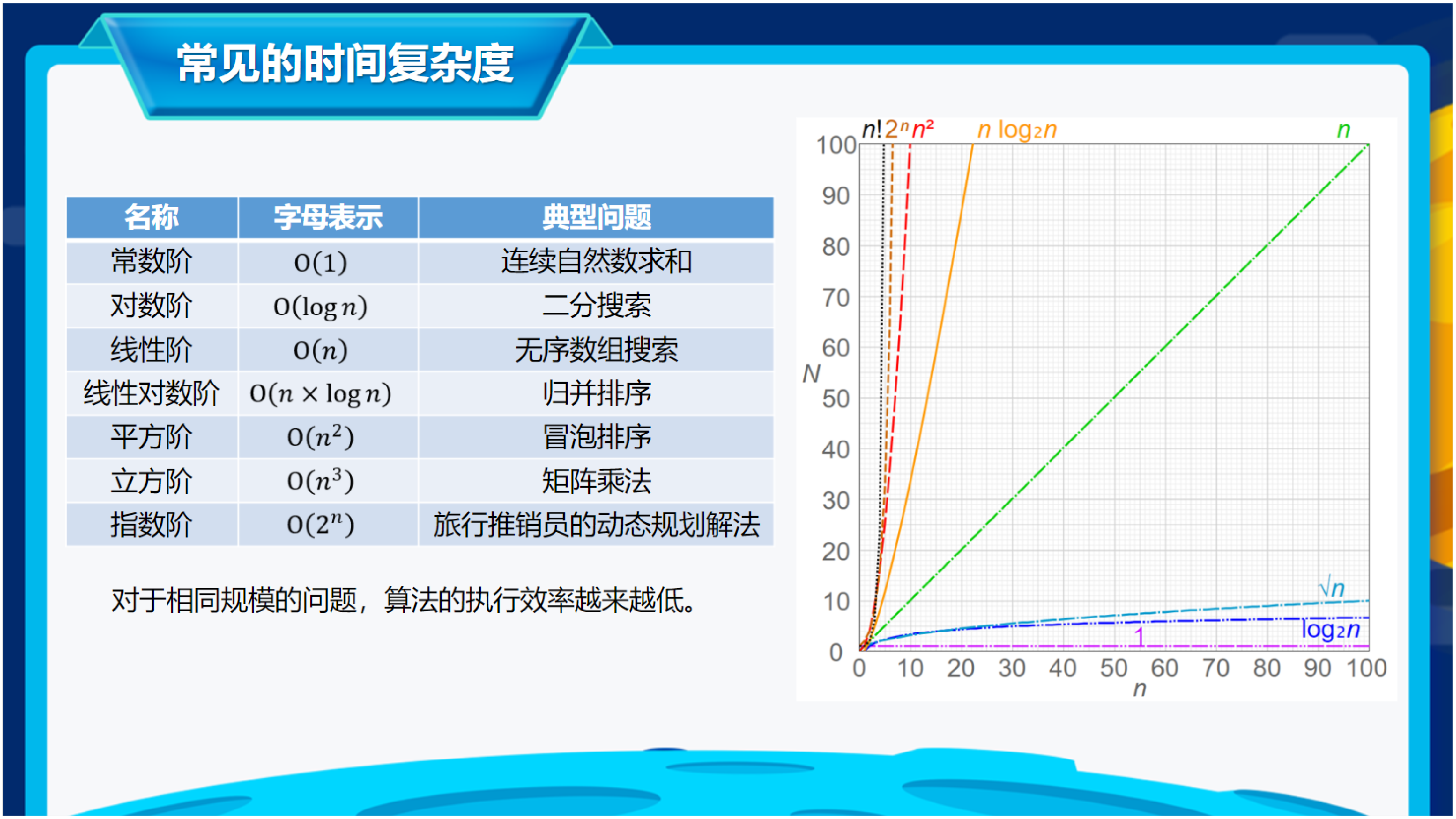 时间复杂度并不是计算程序具体的运行时间,而是算法执行基本操作次数相对于输入规模 n 的增长趋势,通常用大 O 符号表示。
